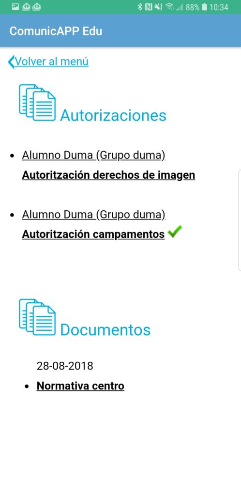 - Pueden crear tantas autorizaciones como sea necesario, con título, texto y posibilidad de preguntar a las familias si aceptan la autorización si/no.