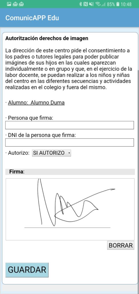 Nuevo sistema de autorizaciones digitales que permite a las familias poder firmar los documentos directamente desde el móvil con el dedo, ¡no se genera ni un solo papel!